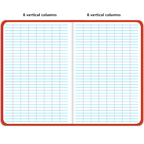 - Ruled light blue with red vertical lines